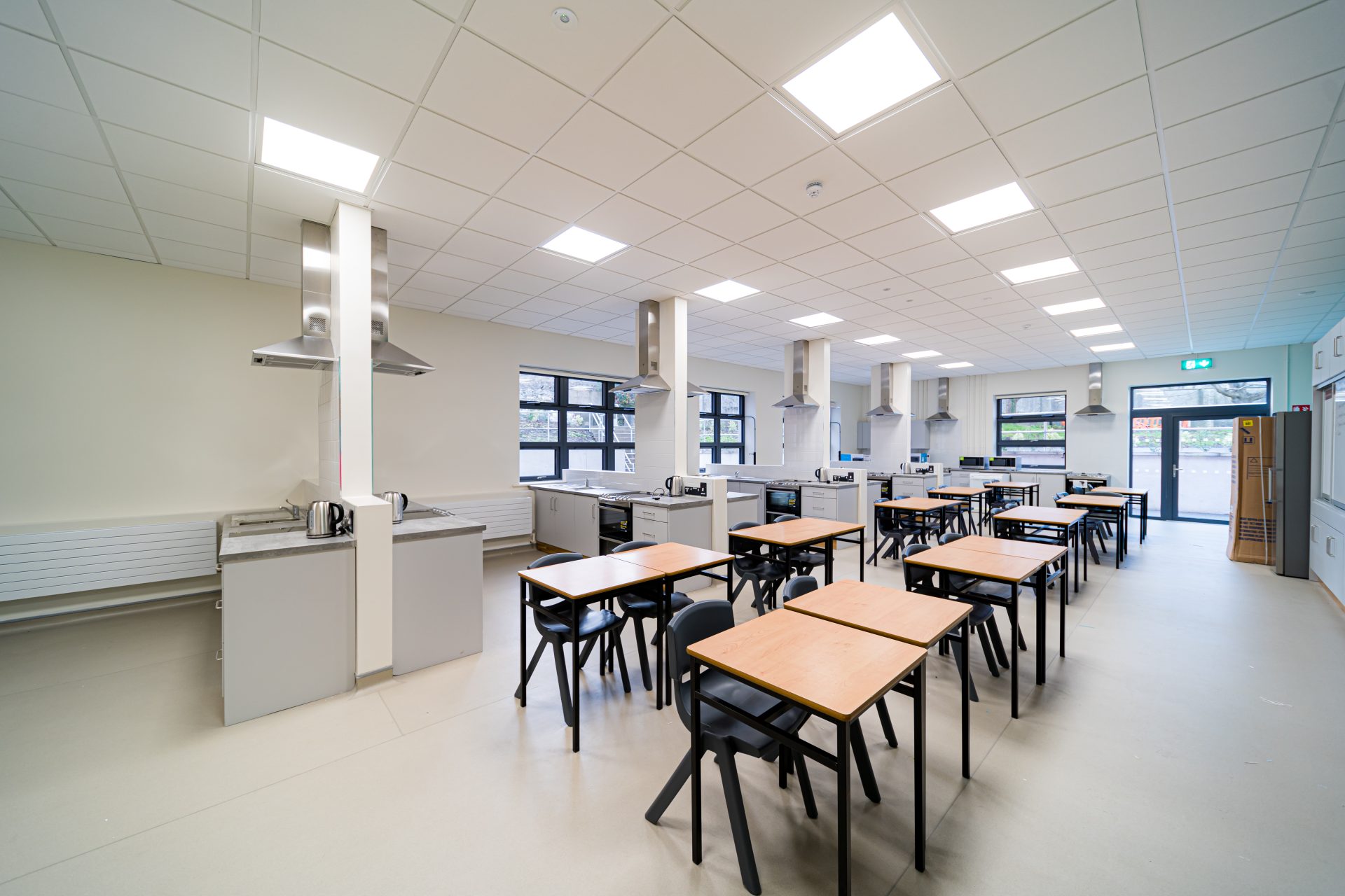 The new extension features three state-of-the-art classrooms, specifically designed to enhance the learning experience. The facilities include a dedicated Construction Studies room, a fully equipped Home Economics classroom, and a Multimedia room. These new spaces are tailored to meet the diverse educational needs of the students, providing them with modern environments to explore practical skills and digital literacy.