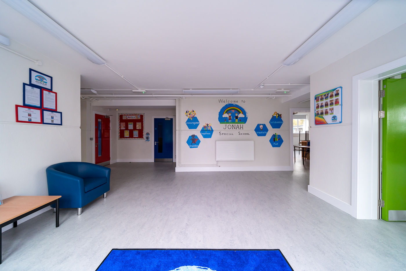 Finishes to the building were carefully considered such as valves being hidden, the presence of sensory colours carefully choosen throughout the building and windows raised higher for safety of children attending The Jonah Centre. The project was completed to a high specification.